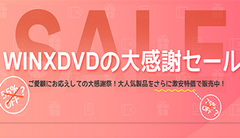 WinXDVDの公式無料キャンペーンページ。一年には二三回の製品ライセンスコードを無料配布する。DVDリッピングソフト-WinX DVD Ripper Platinum, DVDコピーソフトWinX DVD Copy Proと 万能動画変換・編集ソフトWinX HD Video Converter Deluxe という3つの実用ソフトのライセンスコードを不定で無料配布する。好きな映画DVDをiPhone/Xepriaに取り込み・コピー・変換・編集、オンライン動画ダウンロード、動画変換・編集などのようなことをしたいなら、この無料キャンペーンを絶対見逃しなく!